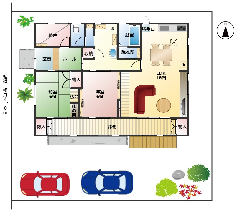 鬱蒼としていた庭の木はすべて伐採し、車の駐車スペースを2台分に拡張。
